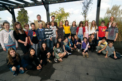 Die Kinderjury des Sonderpreises "Poldi" 2011/2012, Schüler und Schülerinnen des Humboldt-Gymnasiums Köln (ehem. Klasse 5cm/jetzige Klasse 6cm) | Die Kinderjury nach der Verleihung des Sonderpreises "Poldi" 2011/2012 auf dem Dach des WDR-Funkhauses Köln am 23. September 2011 |